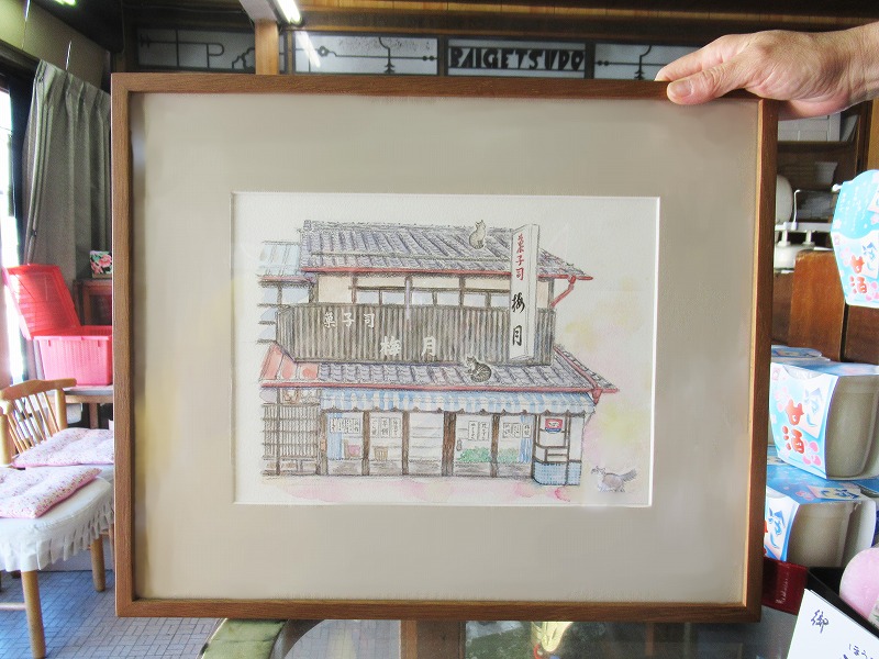 額装された原画は、梅月菓子舗店内で見ることができます。