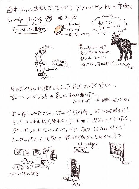 Volendam where is about 30 minutes away by bus form Amsterdam was little lovely area. When I was sketching a cutest house in the street, an owner of the house got home and treat me to tea and cookies, which was impressive good memory. I bought the cheese “Old Amsterdam” that he recommended for souvenir after that and I liked it very much!