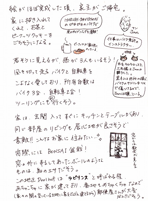 アムステルダムからバスで30分程のフォーレンダムも小さいけれど素敵なエリアで、可愛いお家をスケッチしていたら、家主が帰ってきてお茶をごちそうしてくれたのがとても印象深くいい思い出♪ 家主さんおすすめのチーズOld Amsterdamも後でお土産用に買って美味しかった!