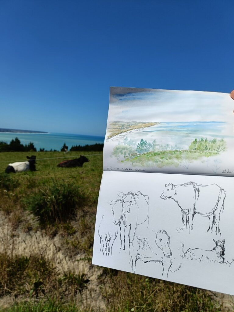 散歩の道中で出会った牛を描きました。